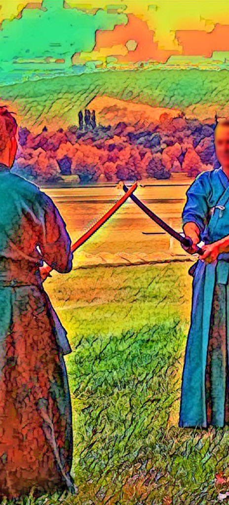 ceux qui le souhaitent se connectent depuis un endroit dégagé, avec un partenaire de Kata, allumant la caméra perpendiculairement à l’axe du Kamae.