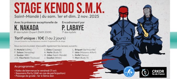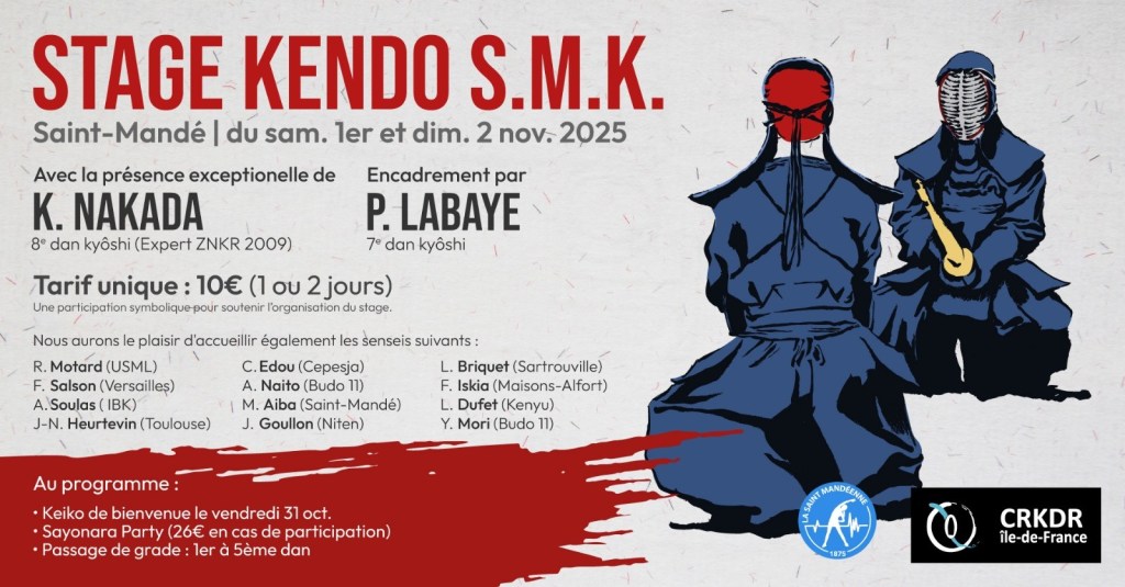 Donc c’est un stage orienté « débutants / faux débutants / débutants seniors » sous la Direction de Claude Pruvost Kyoshi 7ème dan, encadré par Odile Pruvost 7ème dan, Alexandre Petitmangin 6ème, dan Olivier Bardon 6ème dan, Natsuki Grossin 6ème dan et Gabriel Grossin 5 dan.