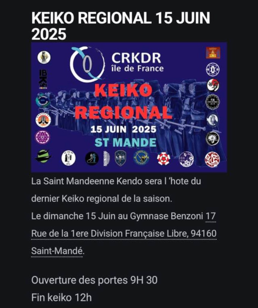La Saint Mandéenne Kendo sera l’hôte du dernier Keiko Régional